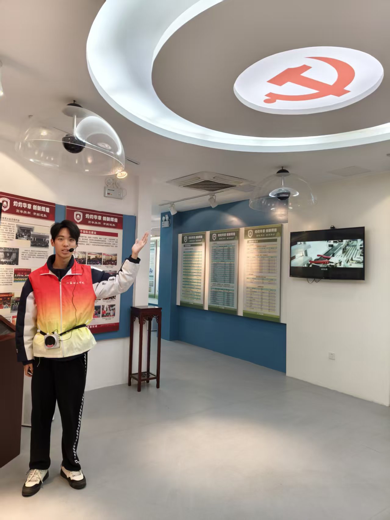 日下午,校第十六期青马班学生参观校史馆。(图为校史馆讲解员赵琰、焦丹钰在为青马班学员作讲解)
